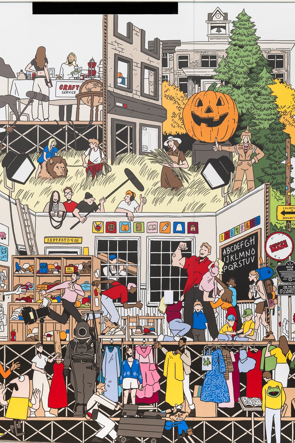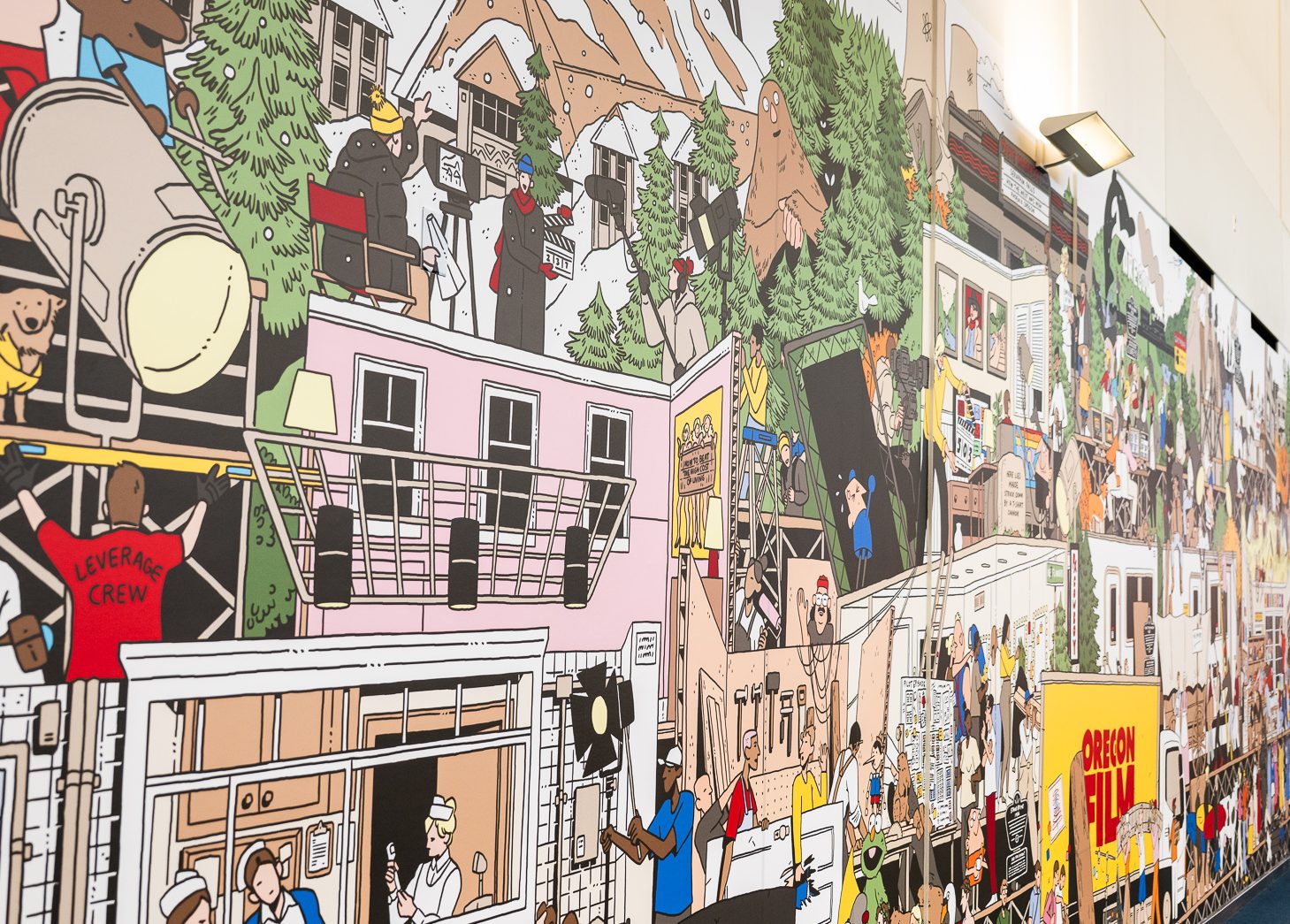 Nick Stokes brought this vision to life through his playful and vibrant illustration. Stokes’ love of film is evident in this mural with a comprehensive visual ode to Oregon’s creative history. He writes, “Creating something that intertwines my love for film, illustration, and my Oregon roots was both an honor and a joy.”
